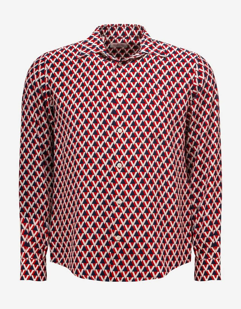 - Long sleeve shirt in silk with all-over Veehive print