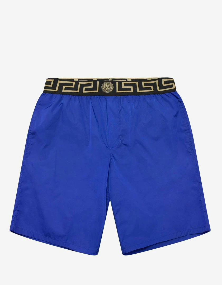 - Elasticated waistband with classic Greek keyΒ intarsia